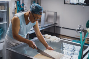 この日は特別に豆腐を作っている現場を少し見せてくれました!大きな豆腐を切る瞬間…。