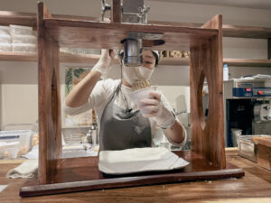 店員が真剣にすごい機械で作ってくれます。思わずじっと見てしまいました。